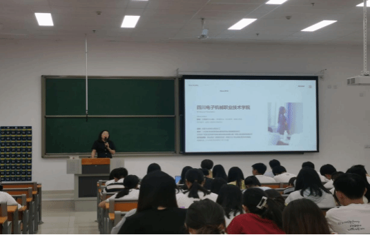 活动开始前,班宇以“自己是什么?”为开篇,引发同学们自我思考,随后她结合自己的职业轨迹展开讲解。她的第一份职业是在大专院校担任专职辅导员,她认为教育是一棵树摇动另一棵树,一朵云推动另一朵云,一个灵魂唤醒另一个灵魂。她把这段经历和体会称为“职场初恋”,她告诉大家只有经历了取舍才能发现最适合自己的工作。随后,她又结合自己在中铁五局、云背篓集团、四川发展(控股)有限公司的工作经历,分享自己成长的点点滴滴,她反复告诉同学们,要永远保持学习的心态,学会向上社交。不完美的开始胜过完美的犹豫,她告诫同学们在找工作时应当重点关心国家政策,要敢于选择,灵活转变自己的认知思维,大胆尝试,去经历,去实践,生活中不要过于计较得失。