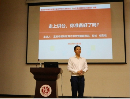 为认真贯彻落实习近平总书记来校考察重要指示精神,进一步加强学部师范专业内涵建设,提升人才培养质量。11月3日下午,理学部在临港校区求是会堂成功举办主题为“中学卓越教师成长路径”的第四届中学校长进校园讲座,邀请宜宾市叙州区育才中学党委副书记、校长任劲松(数学与应用数学专业84级校友)担任主讲。理学部党总支书记刘敏、部长黄多辉、副部长兼数学学院院长罗显康、部分教师代表以及五百多名师范生参加,讲座由刘敏主持。