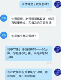 同时,教师们也对这一阶段的线上授课进行了交流。关于课堂考勤的问题,腾讯课堂、QQ的在线数据收集表都可进行考勤,汇总数据也较为便利,使用腾讯会议系统,可以较为便利的看到学生的实时视频,便于掌控学生的学习状况。智慧树系统的作业提交和评价系统较为便利。综合利用各个平台的优点,有利于促进线上教学质量的提高。调查表明很多学生通过手机听课,显示效果欠佳,加上线上授课很难掌控每一位同学学习的实时状态,下一步等恢复线下课后的一项重点任务是对前一阶段线上学习效果进行评估,再针对性进行补足。