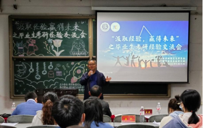 罗显康代表学部感谢4位分享同学的倾囊相授,对2019级的同学们提出殷切希望,勉励他们要以师兄师姐为榜样,尽早确立考研目标,积极备考,争取明年能有更多更优秀的同学来为大家分享自己考研成功的秘诀。