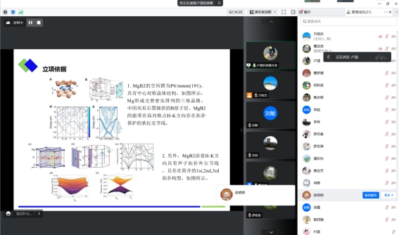 为了做好2023年度国家自然科学基金项目申报工作,提高国家自然科学基金项目申报质量,提升科研组织化水平,理学部于9月14日下午组织召开了2023年国家自然科学基金项目申报论证线上会议。会议由理学部副部长曹启龙主持,理学部党总支书记刘敏,部长黄多辉,计算物理四川省高校重点实验室主任邵菊香,赵良才教授,唐金芳教授,朱浸华教授,李林博士,万明杰博士,申报项目负责人以及理学部青年教师参加了本次会议。
