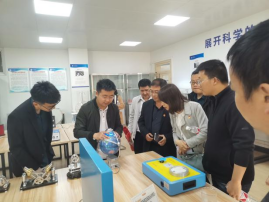 黄多辉部长首先对赖显刚校长及所有党员老师的到来表示热烈的欢迎,随后介绍了科普教育基地的基本情况,发展历程、发展规模以及开展的一系列科普教育活动等等。物理演示与探索实验室科普教育基地在2022年10月获批为宜宾市科普基地,倾力打造集探索、实验和动手制作于一体的特色科普项目,其中现有专职科普人员10名,其中6名具有博士学位,兼职科普人员18名,科普志愿者30名,每年可接纳学生5000余人次,可以开展50多个实操项目和20多个仿真项目。杨明老师为各位党员老师讲解并演示了能量穿梭机、地动仪、电磁炮、磁悬浮列车、3D打印机、燃料电池综合特性实验仪等60多个项目的仪器、器材以及大量自制仪器。