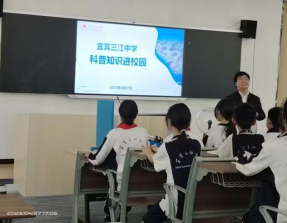 4月27日,2023年宜宾市青少年科技创新成果巡展暨科普进校园志愿服务活动走进三江中学。活动由宜宾市科协、市科技局、市教育和体育局主办,宜宾市物理演示与探索实验室科普教育基地承办。本次活动由科普教育基地教师杨明主持,科普教育基地教师陈曦主讲。