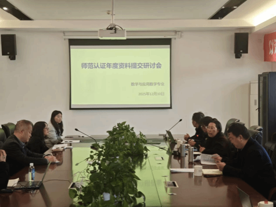 持续改进是师范类专业认证工作的核心理念与基本要求,也是认证价值的重要体现。为确保2025年度认证资料提交工作顺利进行,数学与应用数学教研室于12月10日在数理学院421会议室召开专题会议,围绕本专业师范认证2025年度资料提交相关事项进行深入研讨。会议由教研室主任杜保营主持,数理学院党委书记刘敏、副院长曹启龙及数学与应用数学专业全体教师出席会议。