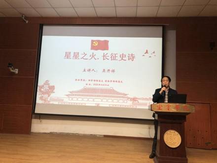 为推动党史学习教育扎实深入开展,2021年4月25日晚,理学部与质检学部特邀原学院党委副书记、副院级调研员、原学院关工委常务副主任、现市关工委宣讲团宣讲员吴开祥教授在硕勋楼A302举办了以“星星之火,长征史诗”为主题的讲座。质检学部党总支书记何春、理学部党总支副书记(负责工作)刘敏、关工委联系理学部组长肖希、关工委联系质检学部组长郑家华、相关负责人及学生代表参加了此次讲座。讲座由何春主持。