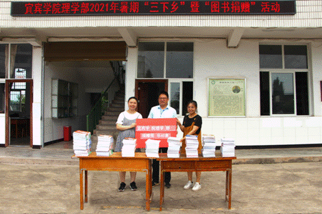 授课结束后,草堂中心校雷福禄校长组织全体同学于操场举行“图书捐赠”仪式。马翠老师将宜宾学院理学部捐赠的40套“四大名著”图书捐赠给草堂中学的孩子们。雷校长对宜宾学院理学部的此次捐赠以及对志愿者们的精彩授课表示由衷的感谢。