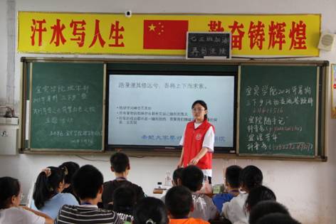 本次暑期“三下乡”线下活动于7月7日在在宜宾市叙州区草堂中学展开。活动中志愿者们分为五个小组,分别为草堂中学七年级五个班的学生进行授课。志愿者们积极发挥自身专业特长,生动形象地为学生讲授趣味物理和数学知识及党史故事,中学生们积极参与互动,使得整个课堂充满着轻松愉快的氛围,真正地实现了“寓教于乐”的效果。其中学生们尤为喜爱刘小山同学的大气压强实验、张莉苡同学的趣味物理知识、孙雪莹同学的党史故事等。