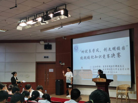 最后,学生会主席彭华婷对本次活动进行总结。她提出,无规矩不成方圆,同学们要树立纪律意识、制度意识,杜绝违规违纪的乱象。