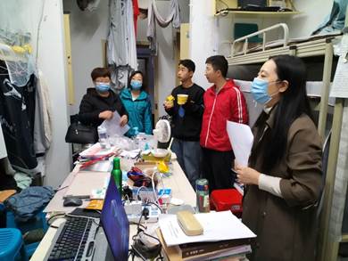 在走访过程中,老师们着重关注了学生寝室的用电安全问题,杜绝私拉乱接电线及禁止使用违规电器、酒精炉、蜡烛等问题。同时也关注了学生寝室的卫生环境问题,强调了同学们平时要注意食品安全、要勤扔垃圾、注意通风等问题,提醒同学们保管好电脑等贵重物品,也为同学们提出的如何解决寝室潮湿问题提供了不少有效建议。