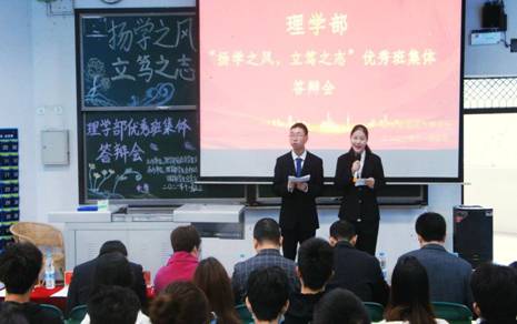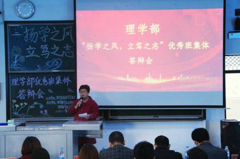 为积极响应学部优良学风班创建工作,促就优良的班风、学风,提高班级凝聚力、扩大班级影响力、塑造班级魅力、活跃班级气氛、增强集体荣誉感,11月5日下午,理学部于硕勋楼B202举办了“扬学之风,立笃之志”优秀班集体评选活动。出席此次活动的嘉宾有理学部副部长黄多辉教授(负责工作)、理学部副部长兼物理学院院长柳福提教授、理学部副部长兼数学学院院长罗显康博士、副处级组织员孟院花老师及各班级辅导员老师。