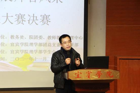 比赛结束,柳福提教授对此次活动进行了点评和总结。首先,他代表理学部对各个学部选手的到来表示欢迎和感谢,对选手们的专业技能水平给予了肯定,对每位选手的不足之处提出了几点宝贵意见。其次给同学们了几点忠恳的建议:第一说课环节不仅要丰富还要有逻辑性;第二说课对象要清楚,授课内容要明确、要符合课程标准;第三教学过程如何设计必须阐述清楚;第四教学方法要准确、合理;语第五言表述要规范;第六课程目标和教学目标要区分清楚等。