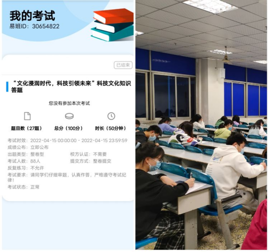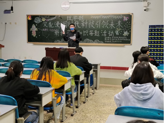 为深入贯彻落实科技兴国,人才强国战略,点燃同学们对科学文化知识的兴趣,开拓科学视野,进而为我国科研事业培养后备力量。宜宾学院理学部学生会科技部于2022年4月15日晚7点在硕勋楼501、505教室举办了以“文化浸润时代,科技引领未来”为主题的科技文化知识答题活动。参赛人员涵盖理学部多个年级,共计86人。