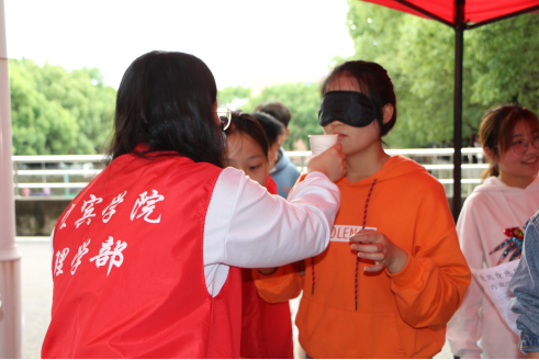 活动当天,志愿者们将成员分成三个小组,分别负责知识宣传、游戏组织和纪念物资分发。活动过程中,志愿者们积极地向同学们讲解“国家助残日”的相关背景知识;邀请他们参与“感同身受”的小游戏:通过蒙眼走路、手语传话、单脚走路等方式去体验残疾人的生活。同学们认真倾听宣传内容,积极通过模拟游戏感受残疾人的实际生活状态。通过学习和体验后,同学们纷纷表示,残疾人的生活有很多的不便,在今后要多关注和关爱残疾人弱势群体,从身边的小事做起,在他们需要帮助的时候主动伸出援助之手。