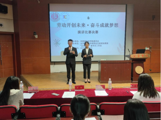 为了进一步教育引导学生崇尚劳动、尊重劳动,树立正确的劳动观,2022年5月27日,“劳动开创未来·奋斗成就梦想”劳动教育主题月活动之演讲比赛决赛在硕勋楼A101会议室举行。本次活动由校团委主办,理学部团总支和“宜理芳华”辅导员工作室共同承办。参加活动的有理学部团总支副书记兼学办副主任马翠老师、专职辅导员罗勤和周露老师及部分学生。本次活动面向全体在校大学生开展,经过前期初赛和复赛共推选出来自各二级学部(院)共10位选手进入决赛。根据疫情防控的要求,决赛采取线上和线下相结合的方式开展。