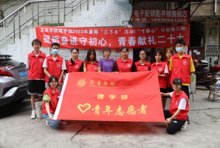 为深入学习宣传贯彻习近平新时代中国特色社会主义思想和党的十九届六中全会精神,深入领会习近平总书记在庆祝中国共产主义青年团成立100周年大会上的重要讲话精神,贯彻落实习近平总书记关于青年工作的重要思想和在宜宾学院考察调研重要讲话精神,教育引导青年大学生在社会课堂中“受教育、长才干、做贡献”,根据校团委工作安排,宜宾学院理学部团总支近日开展了2022年暑期“三下乡”活动(暨“寸草心”计划第三期),此次活动紧密围绕“喜迎二十大、永远跟党走、奋进新征程”主题,采取线上加线下结合的形式开展。线下活动地点在宜宾市叙州区草堂中学和翠屏区合江门街道鲁家园社区。参与活动的有理学部副处级组织员孟院花、团总支副书记兼学办副主任马翠以及本学部33名大学生志愿者。