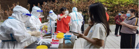 19级3班吴婷和19级4班的徐澜心,家住宜宾市叙州区。疫情当下,防控形势牵动人心,两名同学积极响应学校疫情防控号召。在9月10日至9月14日期间,积极参与所居住的春水苑小区核酸采集的组织活动,与社区干部、群众和志愿者们协力工作,保证核酸采集的有序进行。
