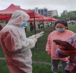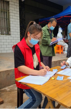 19级4班张定萍,家住泸州市泸县。近日以来,泸州市疫情形势严峻,该同学积极到社区报到,主动争取担任防疫志愿者,在8月31日、9月6日至12日参与当地玉峰社区帮助老年人进行核酸信息登记,确保该社区核酸检测高效有序开展。