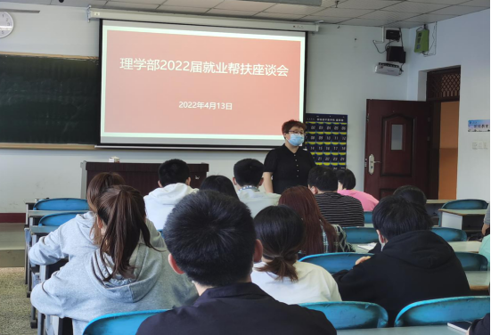 春和景明的四月是每年毕业生的就业黄金期。为有针对性地开展就业工作,促进未就业学生转变就业观念,早日落实就业目标,2022年4月13日,理学部针对2022届获得就业补贴的同学,在硕勋楼708教室召开了就业帮扶座谈会。理学部副处级组织员孟院花、团总支副书记兼学办副主任马翠、辅导员周露以及毕业班班主任参加了座谈。