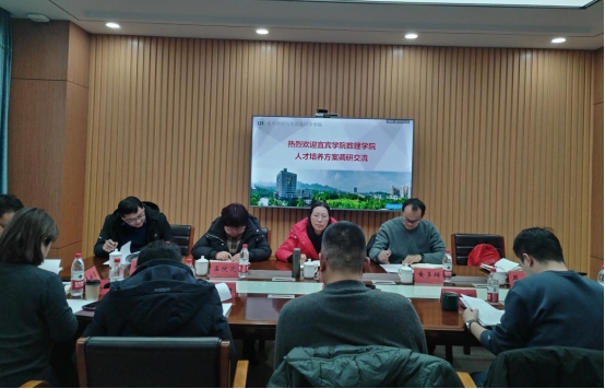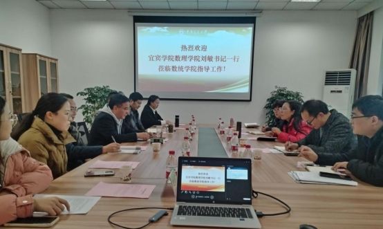 黄多辉重点介绍了宜宾学院办学历史、办学理念和数理学院师资队伍、学科建设情况。刘敏就数学与应用数学专业发展和人才培养方案进行介绍。重庆师范大学数学科学学院党委书记杨江水,副院长张文萌,数学系主任蔡钢及党政办和学工办相关教师参与交流座谈。会上,杨江水就学院历史、办学特色、办学理念、师资队伍作简要介绍。张文萌重点从科研项目、高水平论文、硕士点建设等方面分享了他们在学科建设方面的经验和成果。双方围绕人才培养、课程设置、实践教学、就业指导等方面进行了深入交流。结合本校实际,双方也就自身在人才培养过程中的经验和遇到的挑战进行了分享,深入探讨如何共同提升人才培养质量。