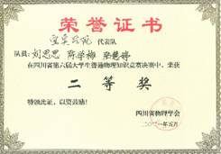 我校理学部高度重视该项赛事,积极准备,由张声遥博士、柳福提教授等担任指导教师,对参赛选手从初赛选拔、决赛场外题的准备、场内知识抢答等全方位、全过程进行了指导与训练。通过一天的激烈角逐,由理学部物理学专业的刘思思、陈学梅、陆慧婷同学组成的宜宾学院代表队最终获得二等奖的佳绩。