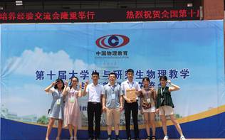 2018年7月29日-31日,由中国教育学会物理教学专业委员会主办的全国第十届大学生与研究生物理教学技能与培养经验交流会在湖北省长江大学如期举行。我校物理学专业6名同学在柳福提教授、程晓洪副教授两位指导教师的带领下,参加了5项教学技能、2项自制教具与设计实验展示,得了专家评委和兄弟院校同行的高度评价,其中王梓桐同学被大会推荐为“教学技能标兵”,李权与饶伟同学被大会推荐为“自制教具能手”。