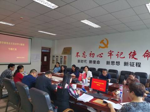刘敏代表党总支,从党总支、教师支部、学生支部和入党积极分子培训班四个层面向指导组详细汇报了理学部党史学习教育的推进情况。她指出,理学部党总支认真贯彻落实中央、省委和学校党委关于党史学习教育的安排部署,积极行动,坚持集中学习与自主学习相结合、领学与研讨相结合,通过读党史原著、听党史专题党课、讲党史故事等形式多样的学习活动,扎实推进党史学习教育。