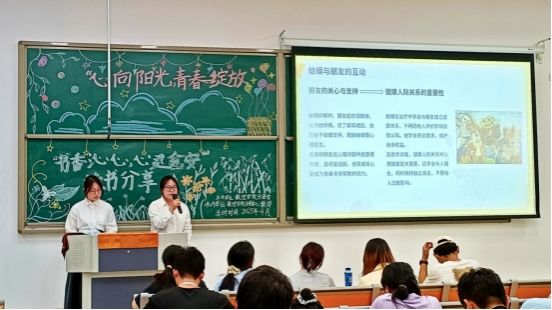 为助力同学们缓解压力,于书香中探寻自我,4月16日,数理学院分团委心理健康教育部在临港二期六号楼103教室举办了“心向阳光,青春绽放”主题系列活动之“书香沁心,心灵愈安”读书分享会。