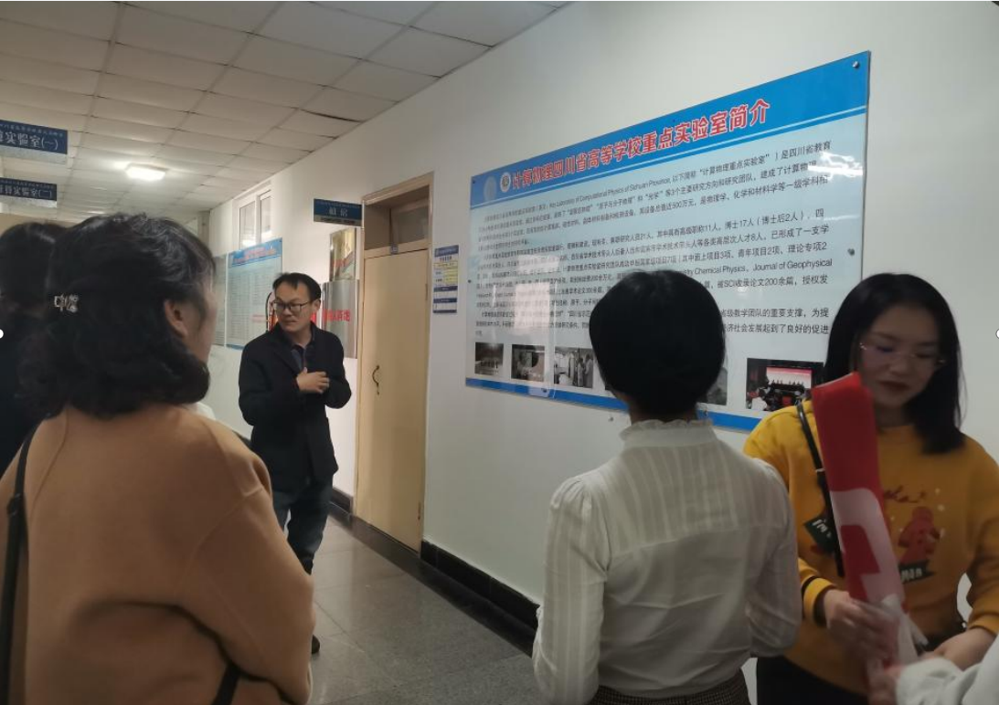 黄多辉部长首先对赖显刚校长及所有党员老师的到来表示热烈的欢迎,随后介绍了科普教育基地的基本情况,发展历程、发展规模以及开展的一系列科普教育活动等等。物理演示与探索实验室科普教育基地在2022年10月获批为宜宾市科普基地,倾力打造集探索、实验和动手制作于一体的特色科普项目,其中现有专职科普人员10名,其中6名具有博士学位,兼职科普人员18名,科普志愿者30名,每年可接纳学生5000余人次,可以开展50多个实操项目和20多个仿真项目。杨明老师为各位党员老师讲解并演示了能量穿梭机、地动仪、电磁炮、磁悬浮列车、3D打印机、燃料电池综合特性实验仪等60多个项目的仪器、器材以及大量自制仪器。
