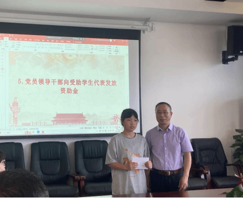会上,易炳平代表党员领导干部为受资助学生发放资助金。